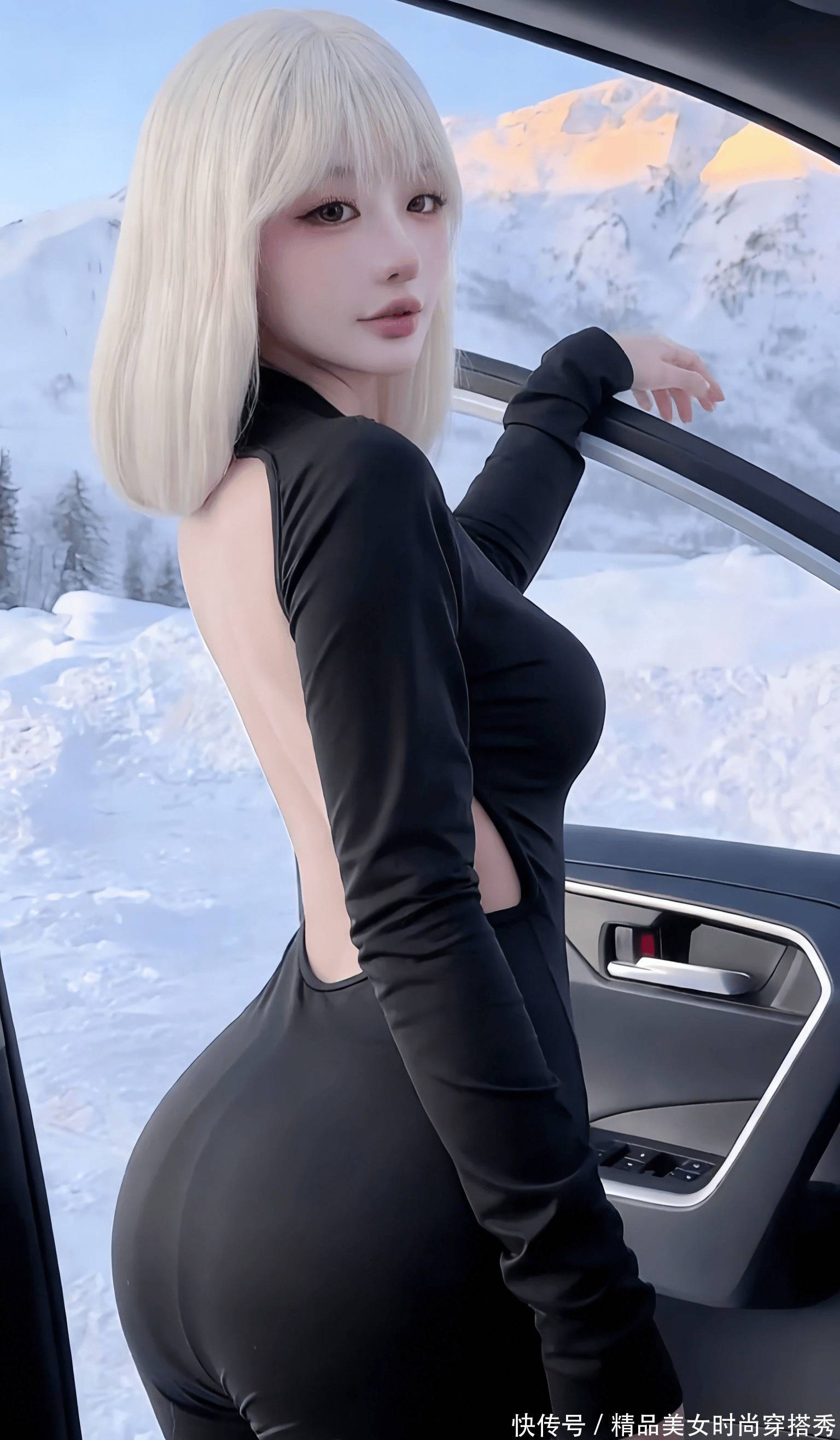 雪山之巅的风卷着碎雪,黑色越野车的车门被一把推开,苏野踩着冰碴缓步踏出。白金短发在冷光里泛着细碎银辉,黑色露背紧身衣勾勒出极具攻击性的曲线,后腰处的狙击枪套若隐若现。她抬手拂过耳后的通讯器,指尖薄茧是常年握枪的证明,眼尾的红痕还带着刚结束任务的凛冽。